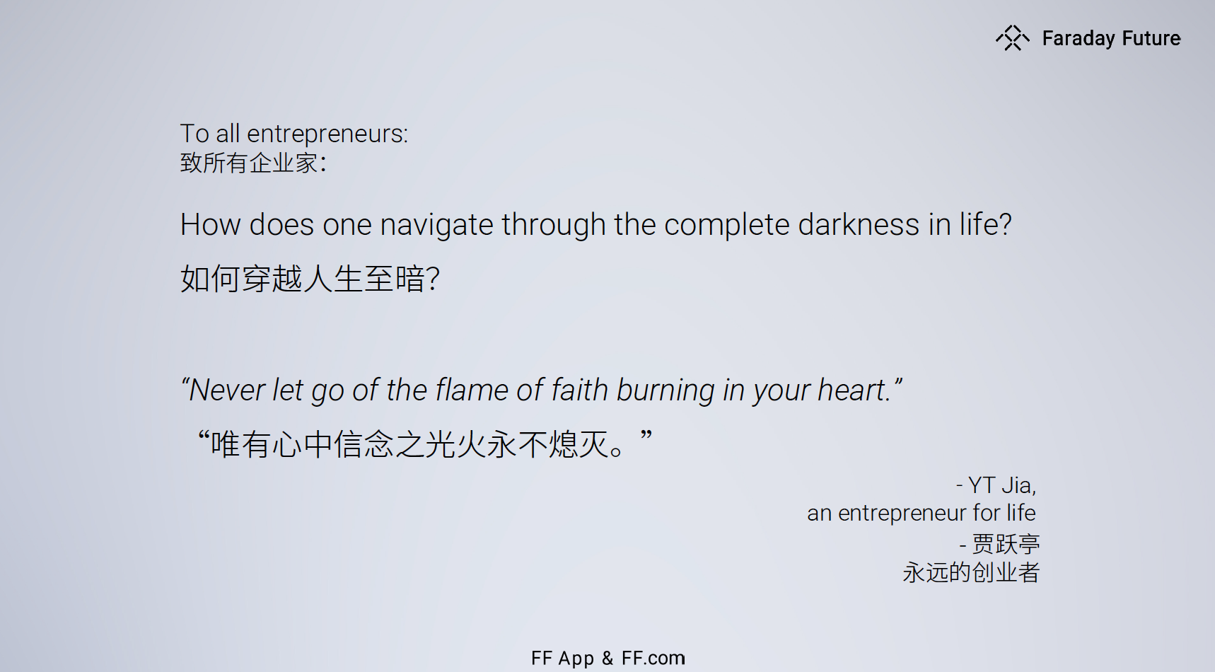 贾跃亭终极发布会PPT的最后一页 图源:FF官网