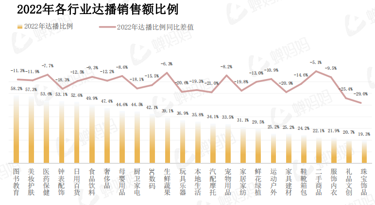 而且由于商家自播分流了一部分平台流量,2022年抖音各行业达人直播带货销售额均呈现出不同比例的下滑。因此,当平台、商家的策略调整后,头部主播面临的压力自然可想而知。