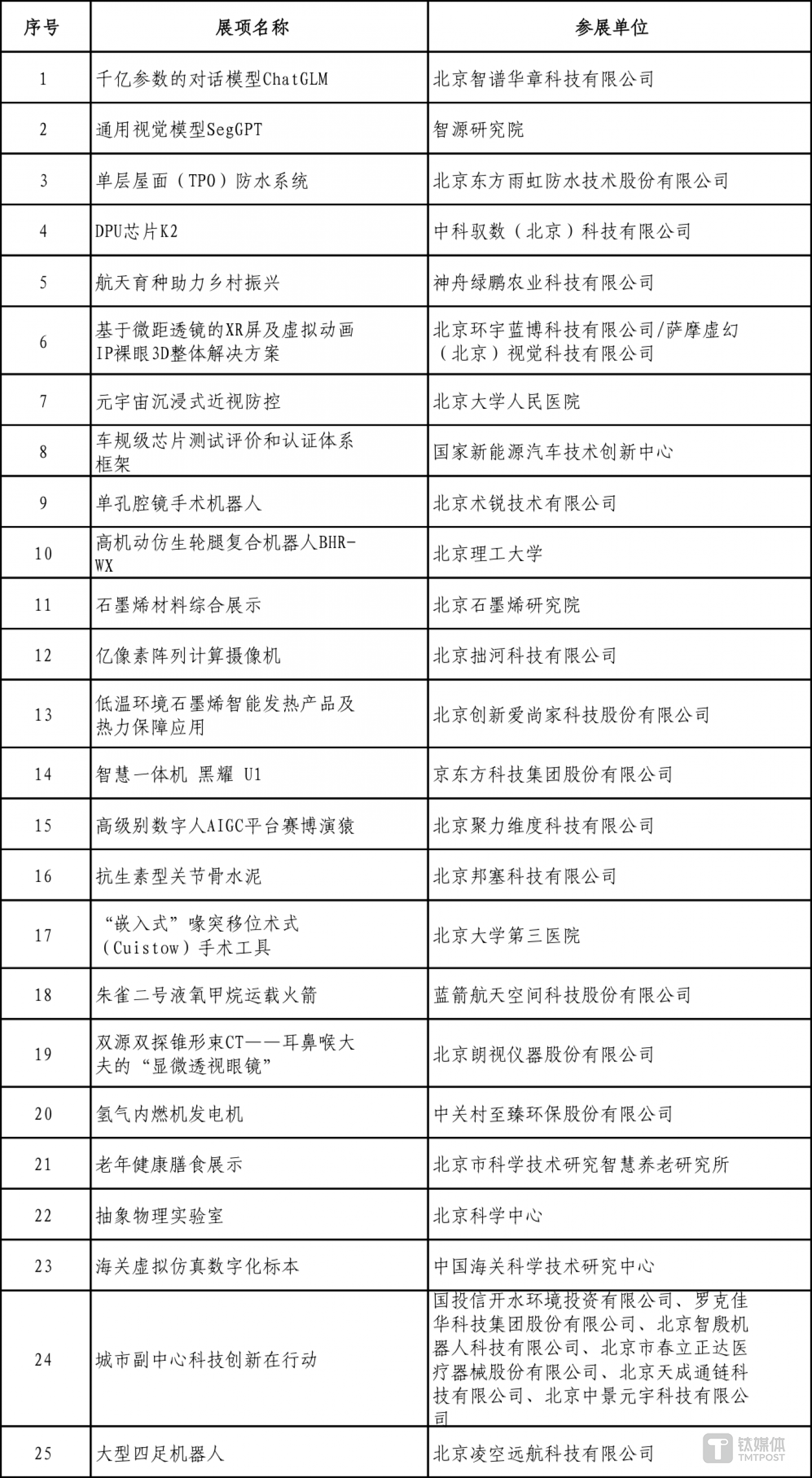 一、彰显科技创新的“北京新征程”。践行党的“二十大”精神,从“自立自强”“踔厉奋发”“勇毅前行”三个维度,展现北京十年征途不懈奋进取得的累累硕果,新时代新征程服务国家创新驱动发展战略的展望。北京科技周上展出了千亿参数的对话模型ChatGLM、可重构智能计算芯片、615公里开放式架构双场量子密钥分发、颅内病灶磁共振监测激光消融治疗系统、航天育种研究成果、高级别数字人AIGC平台赛博演猿等人工智能、高性能计算芯片、量子、医药健康、商业航天、智能装备、机器人、新材料、元宇宙以及新能源及储能等10个领域的86项科技创新成果。同时,还有北京市科协、北京市消防救援总队、通州区政府、北京市科研院、海关总署-海科中心等联合参展单位的展区在北京科技周期间亮相。