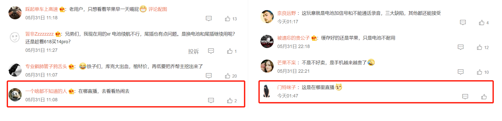 面对价值研究所抛过去的问题,从iPhone 6开始入坑、做了近10年果粉的赫曼感到一丝迷惑。和赫曼一样对苹果下场开播后知后觉的“果粉”还有很多,在微博、小红书等社交平台上苹果直播也没有收获多少关注。