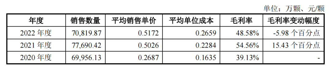招股书显示,报告期内,辉芒微的主营业务毛利率分别为35.65%、50.86%和45.70%,在经历2020年和2021年的增长后,2022年辉芒微的毛利率出现了大幅度下滑。