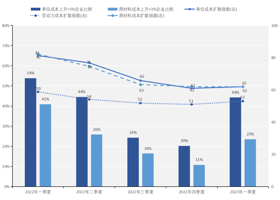 成本上涨问题较2022年一季度有所缓解,但与2022年四季度相比有抬头趋势。