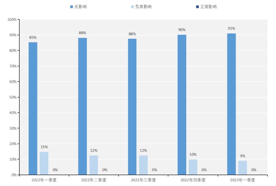 从2023年一季度数据来看,认为中美贸易摩擦对企业有负面影响的比例仅为9%,较去年同期下降了6个百分点,中美贸易摩擦总体影响持续降低(图10)。