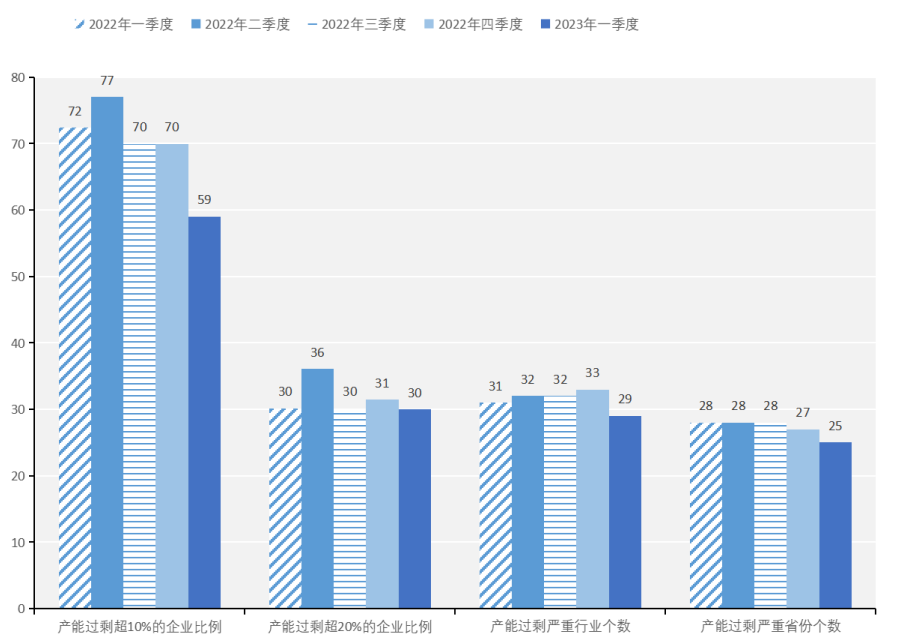 积极的一面是,从企业层面看,产能过剩超过10%的企业比例(59%)在2023一季度有了较大幅度缩减,较上期下降11%,表明一季度企业产能过剩规模有所减小。