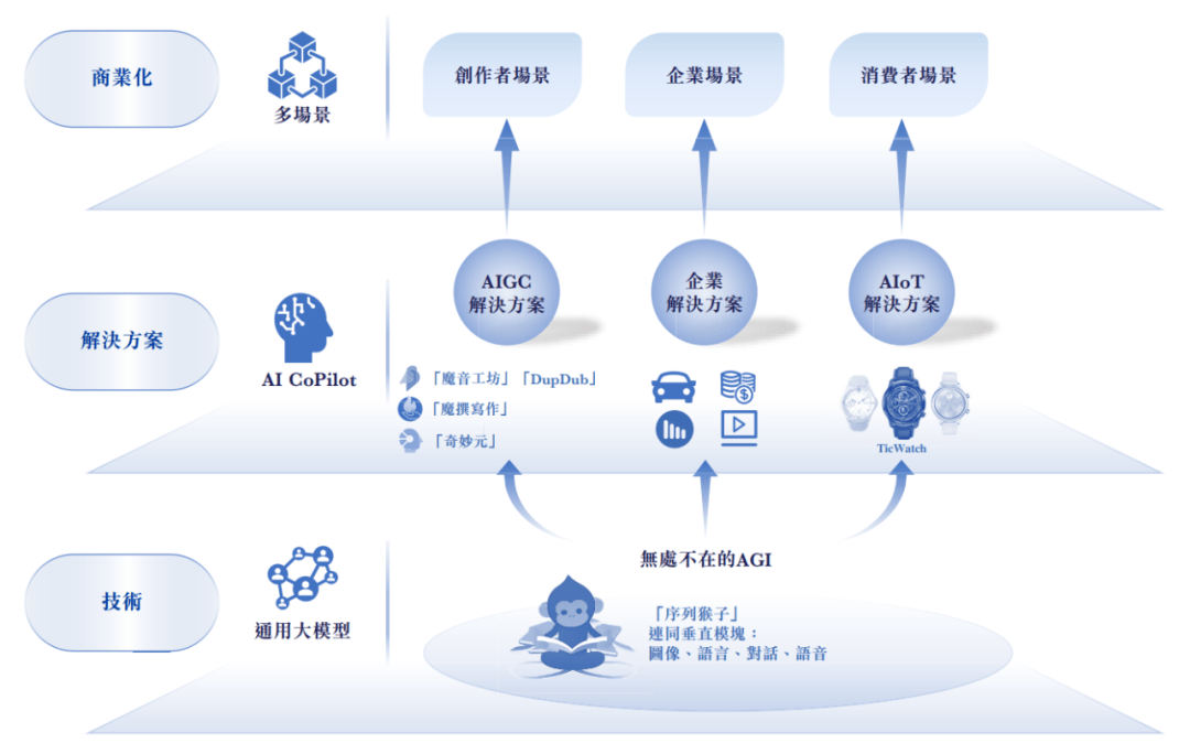 按照招股书介绍,以通用大模型「序列猴子」为底层技术,出门问问当前共推出了AIGC、企业服务、AIoT三大解决方案。