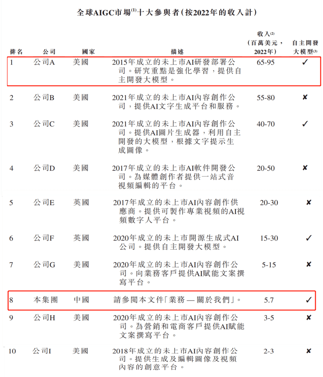 在招股书中,出门问问号称自己是“AIGC收入全球市场第八、亚洲第一”、“亚洲为数不多的具有建立通用大模型能力的AI公司之一”。