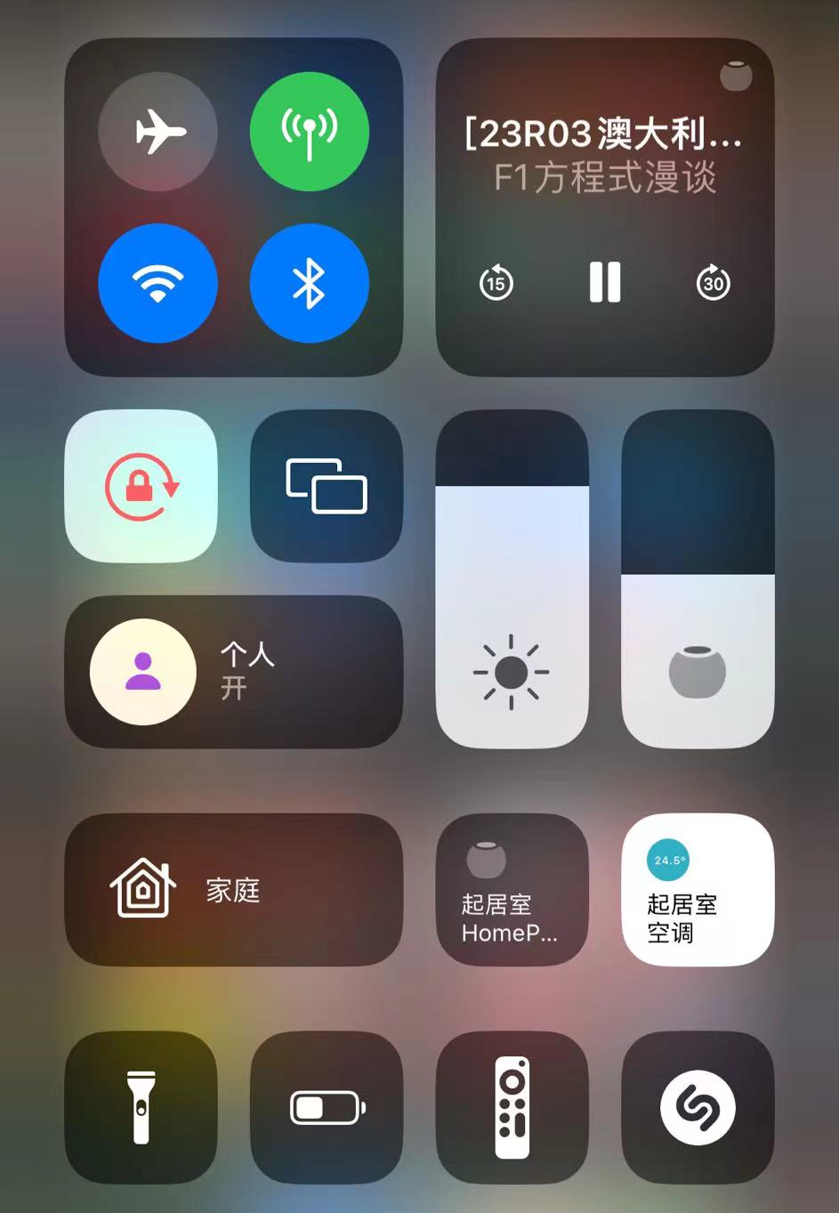 家庭中的空调组件可以直接点击切换状态,同时也可以长按打开弹窗进行控制;HomePod图标却只能打开弹窗控制,不能直接点击暂停;Apple TV遥控图标却会另外打开一个独立的App,连弹窗都没有。这种混乱的逻辑是Apple多年来忽视控制中心的直接后果,也是iOS 17中无法绕过的话题。