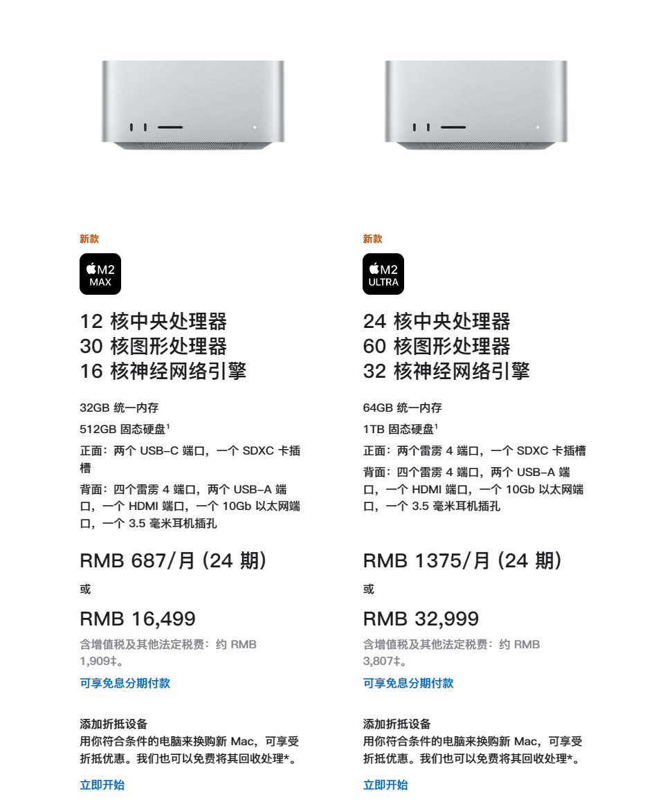 除了搭载M2 Ultra,Mac Studio配备了HDMI、雷电4接口,支持Wi-Fi 6E和蓝牙5.3,预装macOS Ventura系统。在售价方面,搭载M2 Max处理器的Mac Studio起售价是16499元,搭载M2 Ultra版处理器的Mac Studio起售价则为32999元,在价格方面比上一代分别贵了2000和3000元。