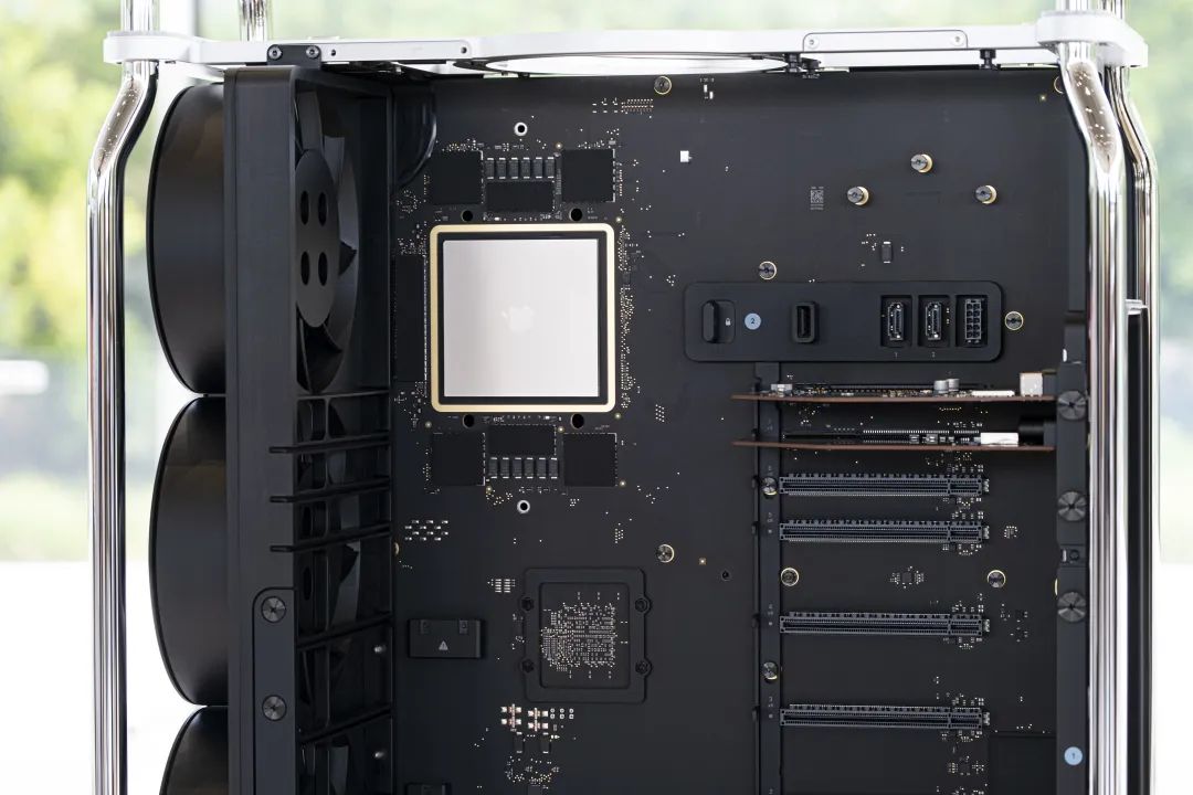 外观设计上,新款 Mac Studio 基本与 2019 年款采用了大致相同的设计,但搭载了 8 个雷雳接口以及两个 HDMI 接口,内部还搭载了 6 个拓展 PCI 插槽,同时作为专业工作站设备,也搭载了刚刚发布的 M2 Ultra 芯片,搭载双 10GB 以太网口。