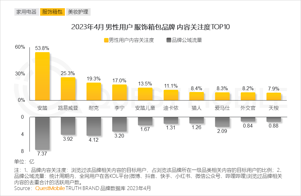 6、男性用户对国产运动品牌及国际奢侈品大牌均有较高的关注度,并且随着男性时尚意识的觉醒,男装品牌越来越注重数字化营销