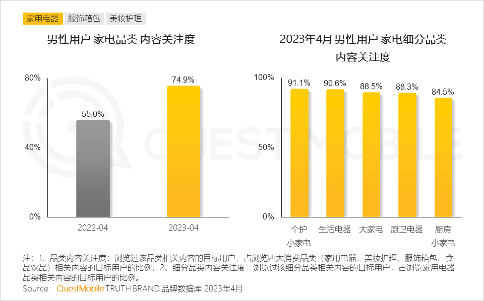 3、男性用户作为家电消费的重要力量,随着以扫地机器人为代表的智能清洁家电,及空气炸锅等厨用电器的兴起,对个性化小家电的关注度提升