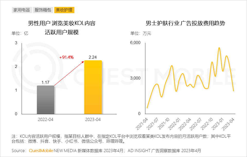 1、男性消费的边界不断扩张,在多个女性为主的消费领域释放购买力