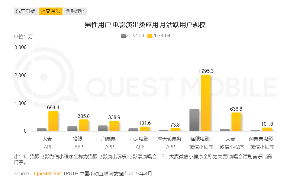 7、线下娱乐活动放开,电影、演出市场强势复苏,男性观影观演的积极性高涨,各类票务平台活跃用户翻倍增长