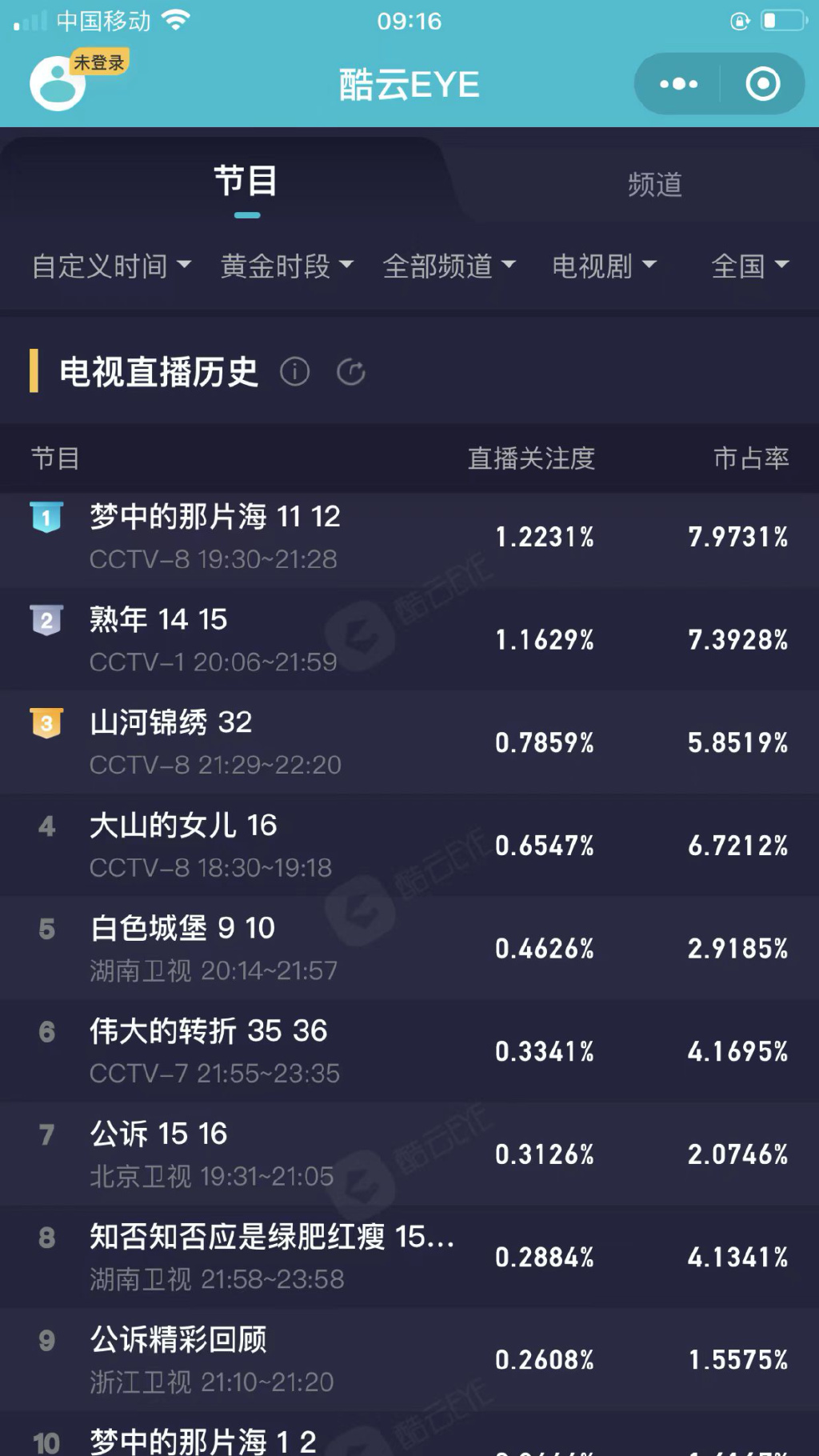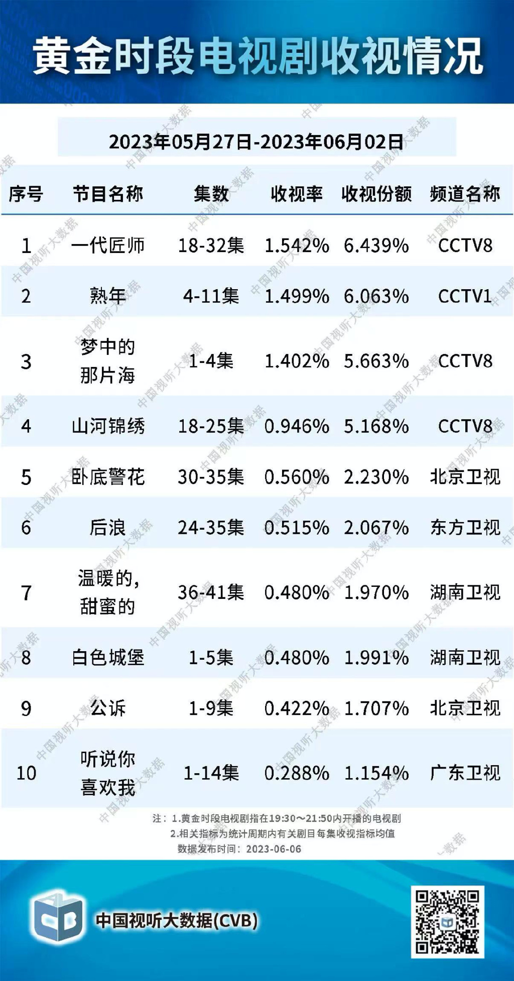 《梦中的那片海》则相对更加突出,首周平均收视率达1.4%,仅次于播出两周的《熟年》和《一代匠人》,酷云直播关注度则连续6天登顶,直播关注度在1.2-1.3%之间,高于排名第二位的《熟年》。从酷云榜单上看,除了《山河锦绣》《大山的女儿》等老剧收视靠前外,上周登陆湖南卫视的医疗职场剧《白色城堡》也出现在前五名,主演彭冠英在Q1 凭借现偶剧《听说你喜欢我》小范围出圈。