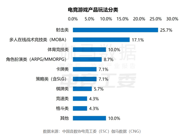 据《2022年中国电竞报告》显示,中国电竞游戏产品玩法类型中,占比最多的为射击类和MOBA类,卡牌类仅排名第五,占7.1%。这还只是数量上的占比,若是赛事观看量或市场份额占比恐怕只会更低。