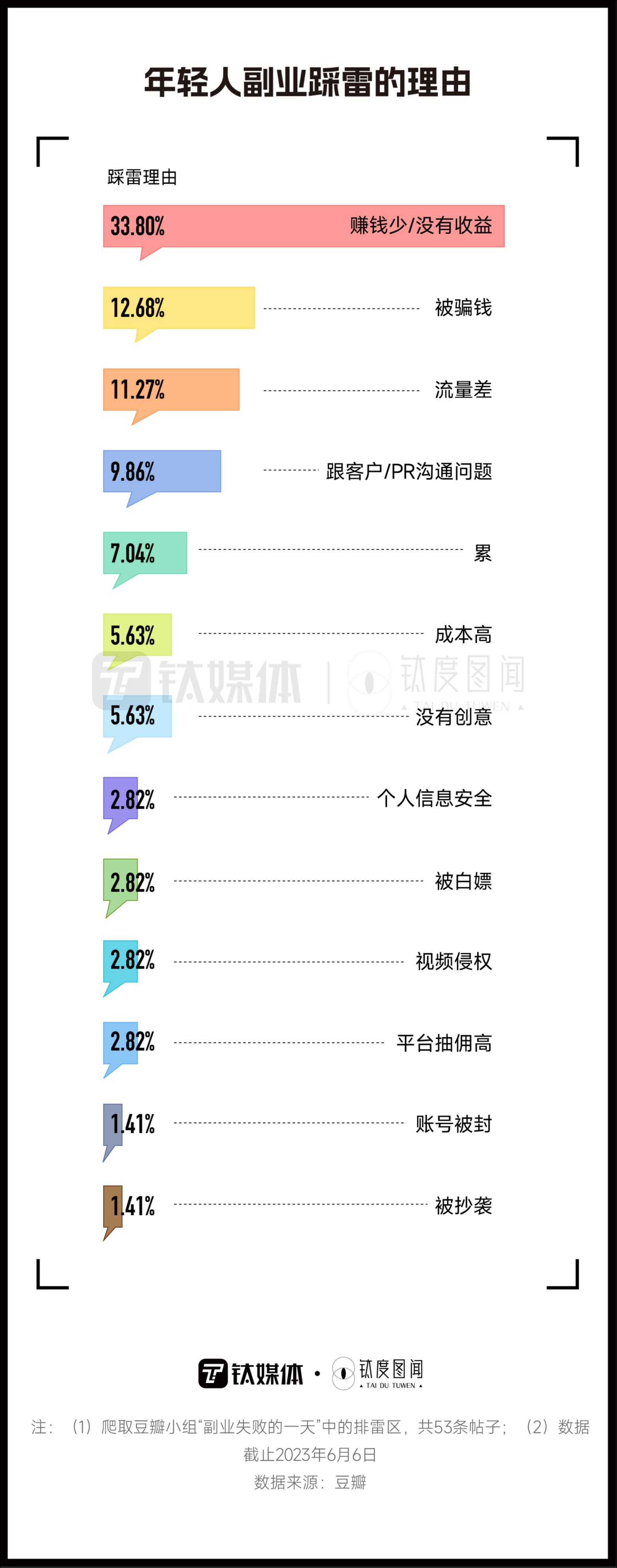 流量差、没有创意、个人信息安全、被抄袭等也是年轻人副业踩雷的理由