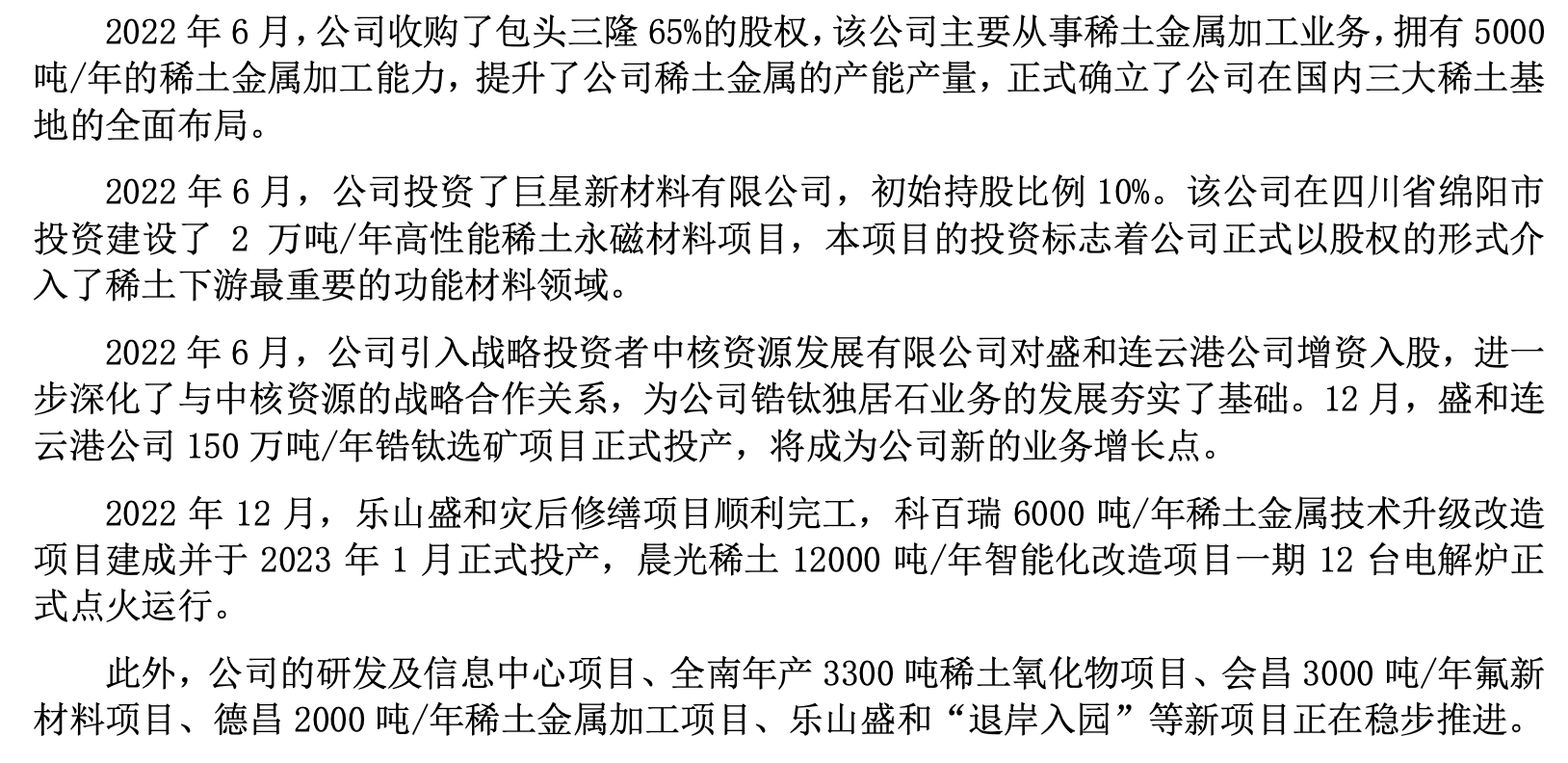(盛和资源重大投资并购项目,来源:2022年报)