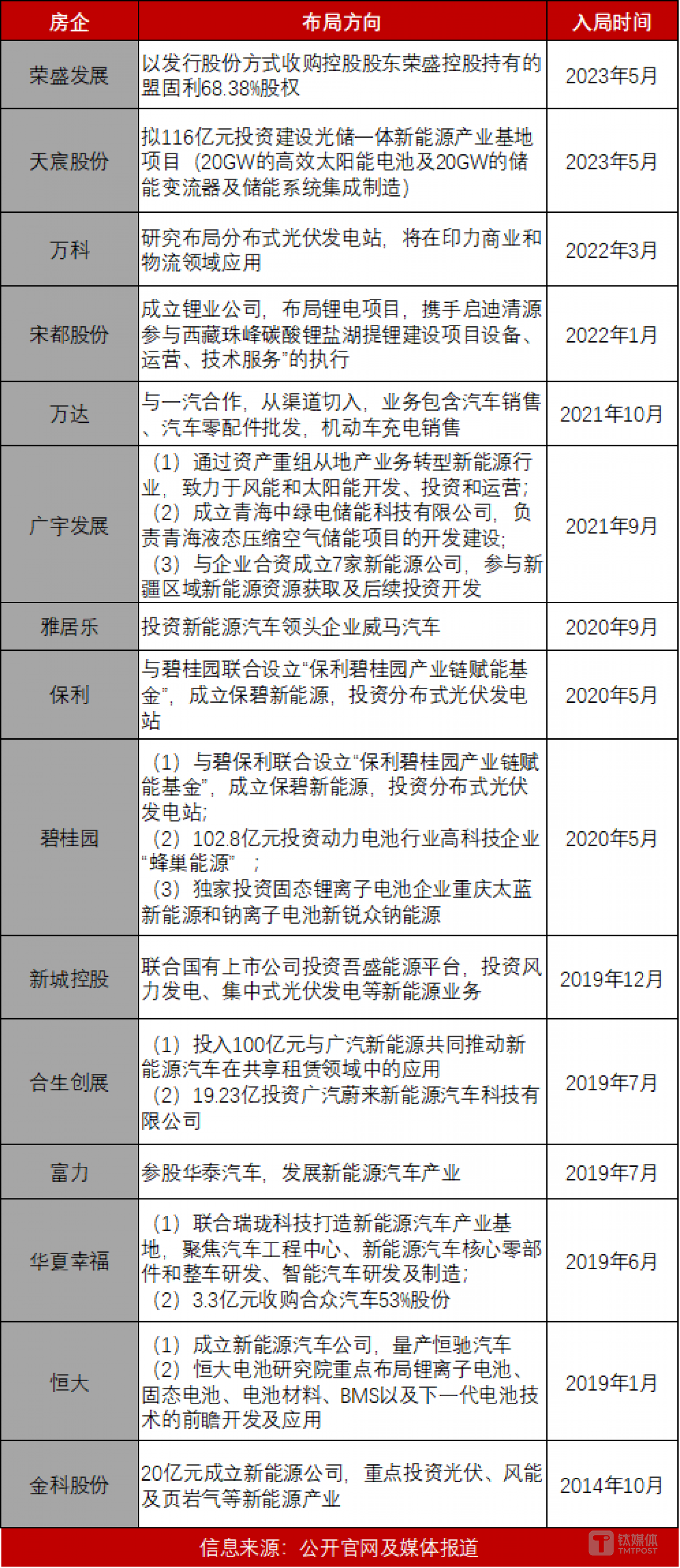 房企布局新能源业务汇总,制图:钛媒体