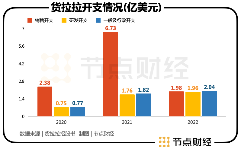 在招股书中,节点财经看到货拉拉已经“退出”了补贴大战。2021年,公司的销售开支暴增164.7%,同期活跃商户和活跃司机的规模分别增长了42.5%、59.8%。到了2022年,公司的销售开支同比下降了70.5%,这也是公司在2022年实现扭亏为盈的主要原因。