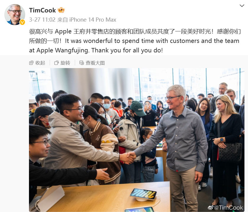 图源:库克个人微博