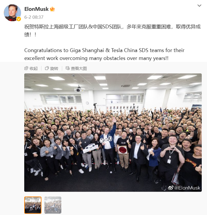 图源:马斯克个人微博