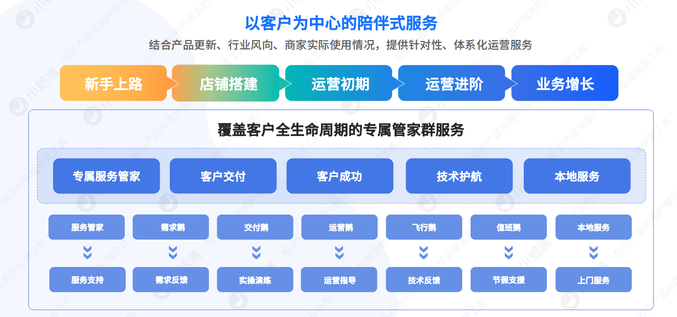 另一方面,小鹅通在2021年初便提出打造“SaaS界的海底捞”的目标,对服务体系进行了全面升级,并建立专属服务管家群,以便7×24小时响应客户需求、更好地解决问题。