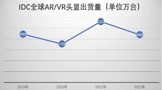 以终端产品的出货量为例,第三方研究机构IDC的统计数据显示,2022年全球VR/AR出货量为880万台,同比下降20.9%。
