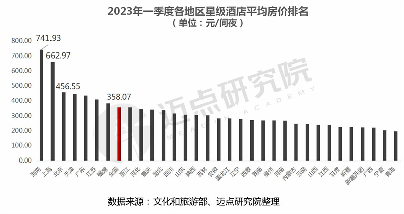 3.酒店平均房价:海南省以741.93元/间夜的绝对优势引领全国