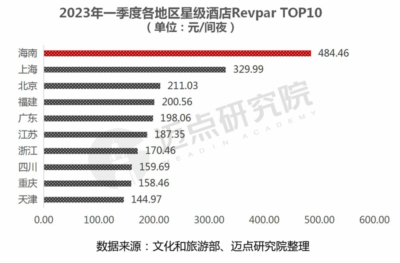 5.酒店RevPAR:海南省星级酒店Revpar位列各地区第一