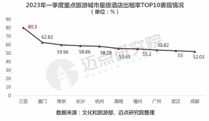 4.酒店平均出租率:三亚市平均出租率高达80%,位列各城市之首