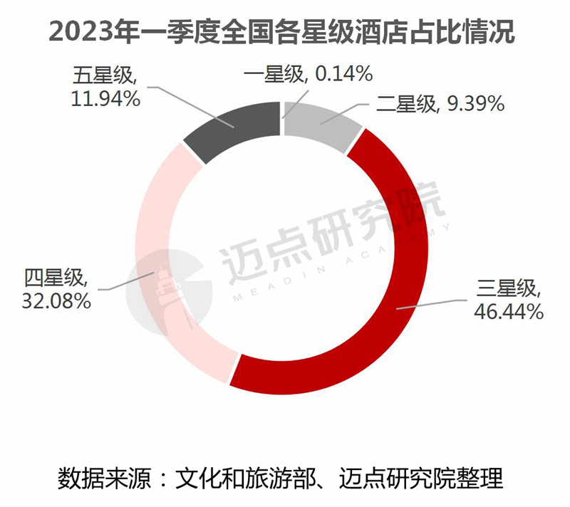 从广东省星级酒店结构看,三星级酒店占比最高,为49.32%,接近一半。其次是四星级,占比26.71%;五星级酒店占比20.09%,约占五分之一。