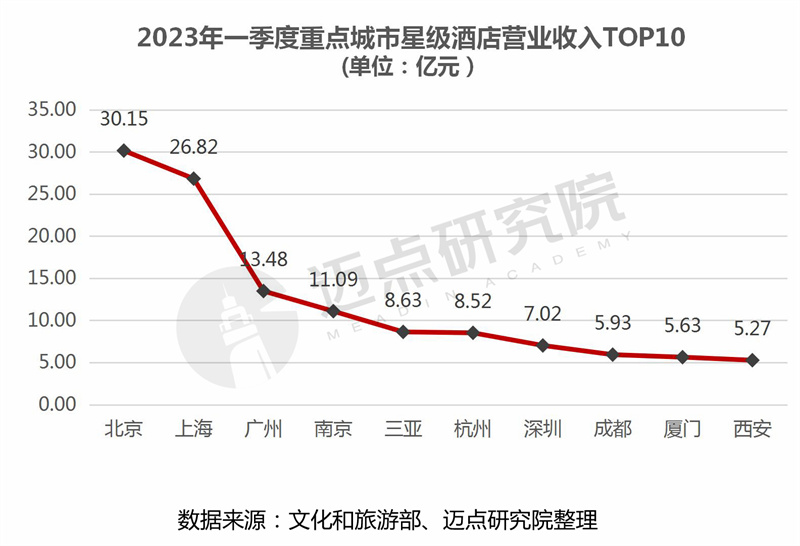 2.酒店营业收入:北京市营业收入超30亿元,为各城市最高