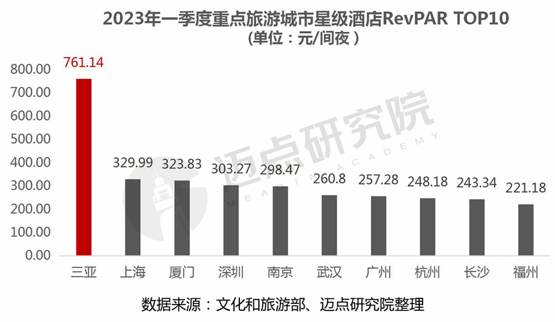 5.酒店RevPAR:三亚市星级酒店RevPAR761.14元/间夜,远超其他城市