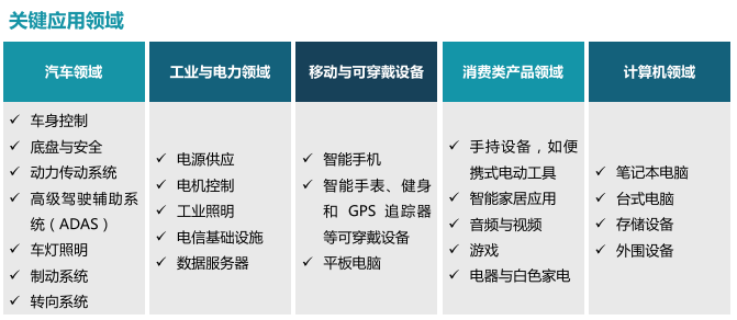 安世集团产品主要应用于汽车领域、移动及穿戴设备、工业与电力、计算机设备、消费领域,收入占比分别为48.6%、14.3%、23.2%、8.2%、5.7%。