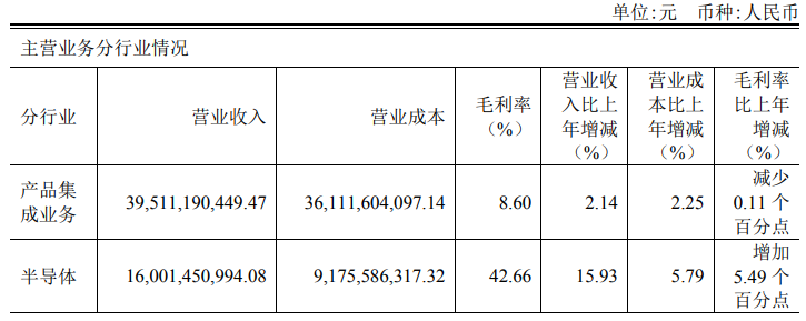 2022年,闻泰科技半导体业务实现营收160.01亿元,同比增长15.93%,净利润为37.49亿元,同比增长42.46%,毛利率为42.66%,半导体业务也是闻泰科技最大的盈利来源。