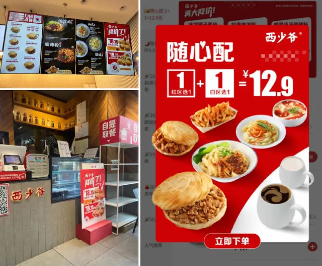 进入6月,西少爷北京、上海区域门店的「鸡骨浓汤酸辣粉」限时回归9.9元,降价超过15元。而就在今天(14日),西少爷还正式复制了“西式大佬们”的玩法,推出「1+1随心配」模式,红区白区各选一,定价12.9元。