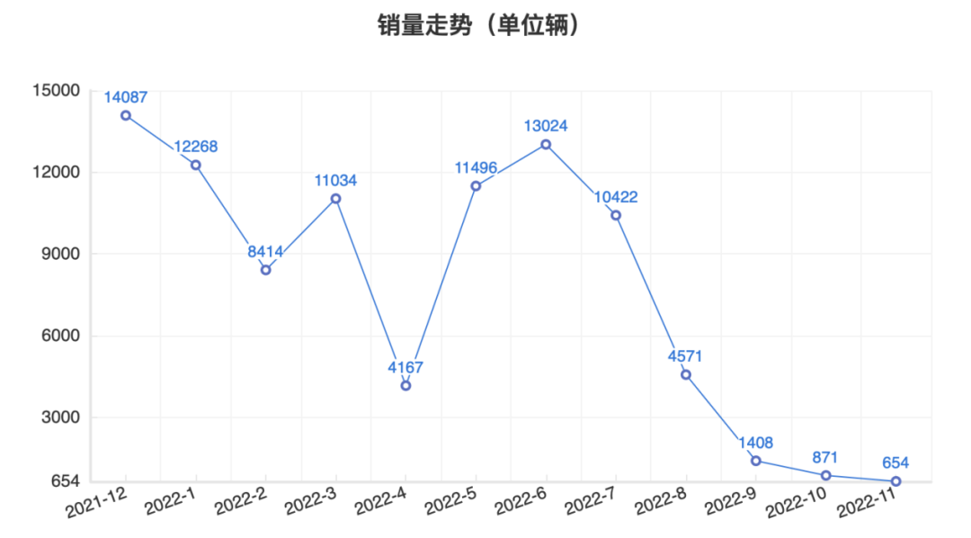 可以清楚地看到,2022年5-7月,理想ONE连续三个月销量破万,但到了8月销量便出现断崖式下滑。到理想L9开始全面交付的9月时,销量已不足高点时的1/10。称得上是李想口中的“销量崩盘”。