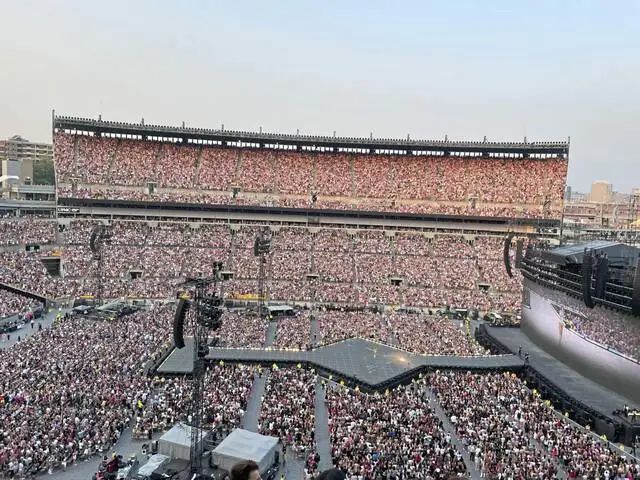就在前天,斯威夫特在匹兹堡Acrisure体育场举办的演唱会吸引了总计7.31万名观众入场,创下了该体育场的商演上座率记录。除了入场的7万多名听众,还有成千上万买不到票的粉丝聚集在体育场外,随着场内的音乐一道载歌载舞。流行乐天后的人气可见一斑。