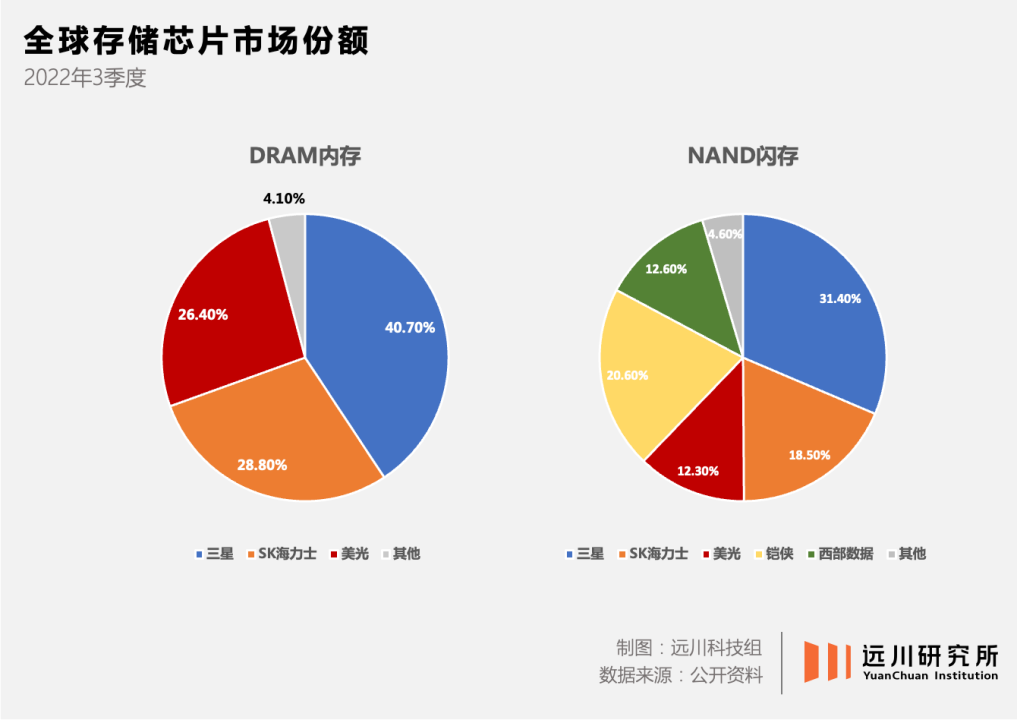 不过由于产品高度标准化,每隔几年就要来一次价格战,上演大鱼吃小鱼的戏码。在市场规模较大的内存和闪存两个门类,经过多次价格周期,主流玩家已经所剩无几。