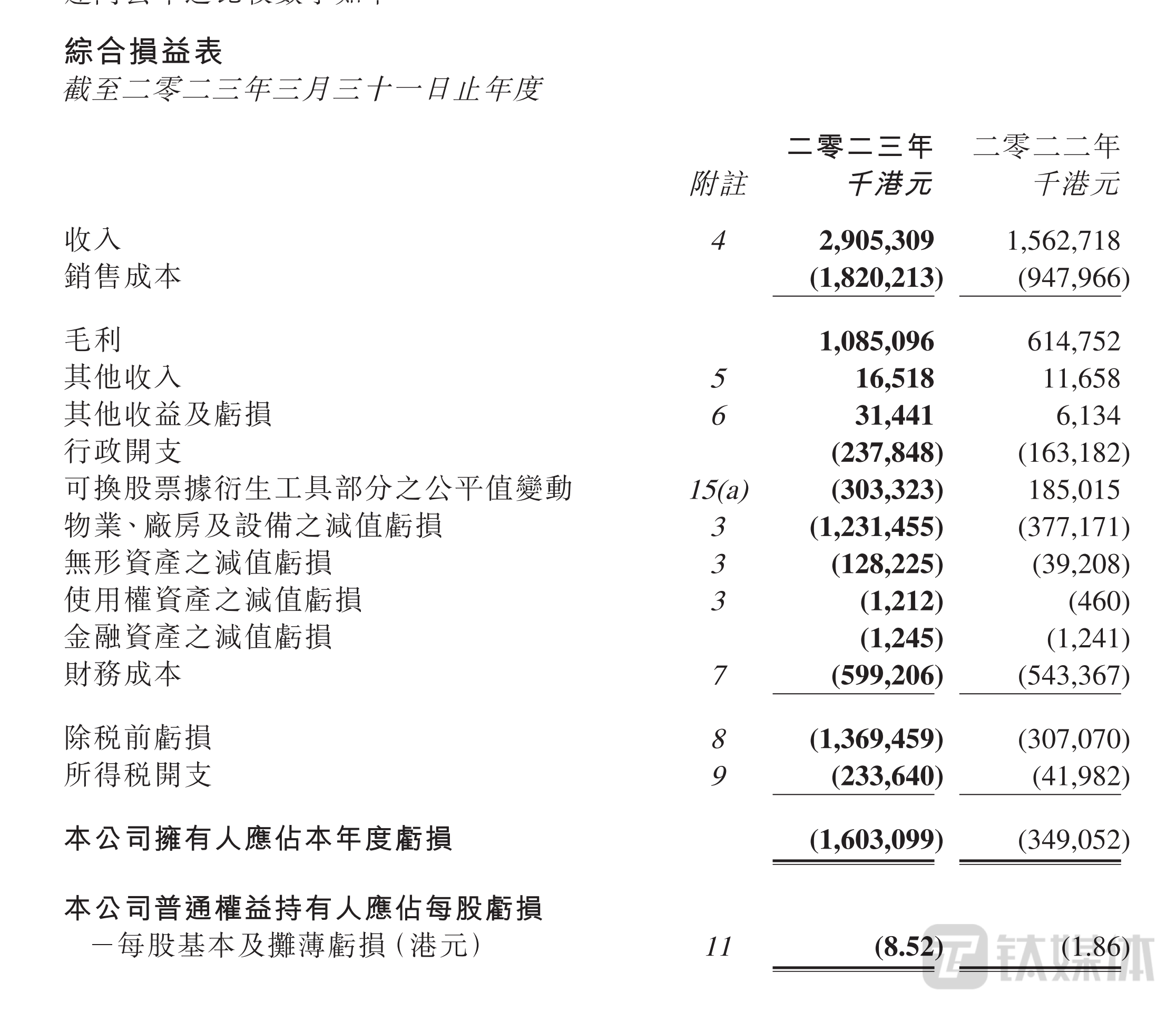 6月19日晚间,蒙古能源(00276.HK)发布截至2023年3月31日止年度业绩报告,报告期内,公司取得收入约29.05亿港元,同比增加85.91%;公司拥有人应占亏损约16.03亿港元,同比增加359.27%;基本每股亏损8.52港元,不派息。