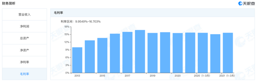 天眼查APP财务简析显示,从过去几年京东的毛利率表现来看,都稳定在14%以上,2021年受外部环境影响略微有所下降为13.5%,但整体来看,在京东的经营增质阶段,毛利率非常稳定。