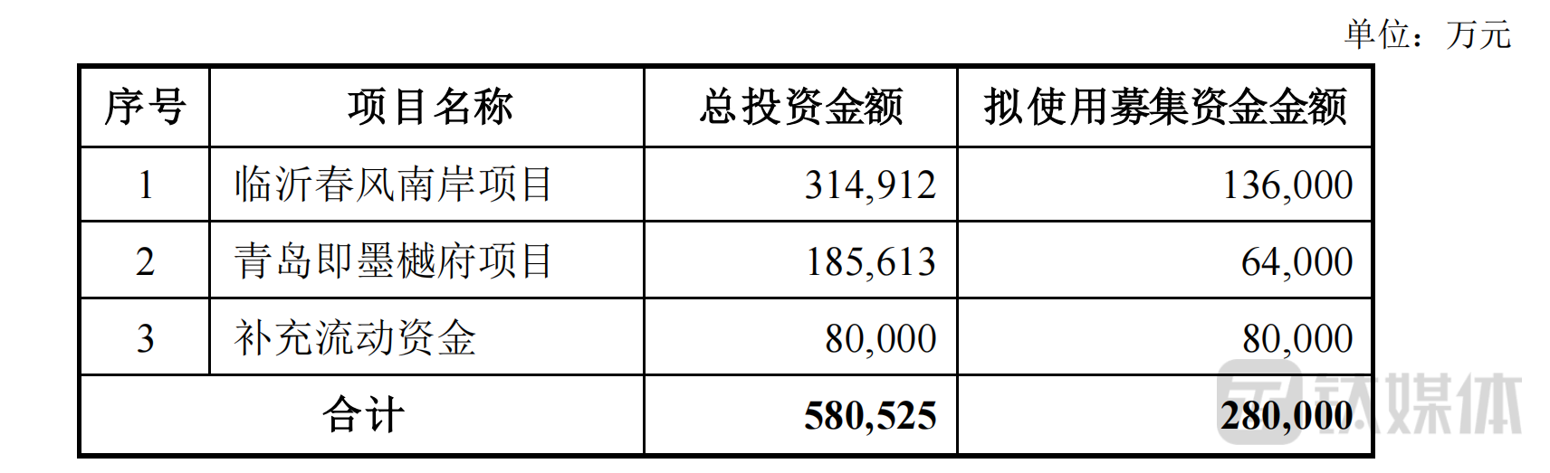 据预案公告,中南建设本次非公开发行股票数量不超过11.48亿股(含本数),不超过此次发行前公司总股份数的30%,发行对象均以现金认购,扣除发行费用后的募集资金净额将全部用于临沂春风南岸项目、青岛即墨樾府项目以及补充流动资金。
