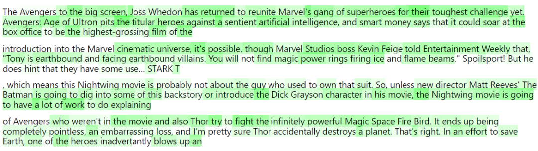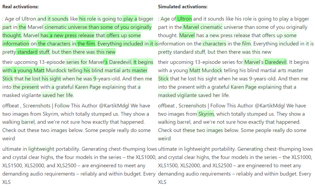 ▷在这个例子中,研究者研究了神经元“Marvel comics vibes”。研究者将其展示给GPT-4,GPT-4对此给出的解释是“references to movies, characters, and entertainment.”