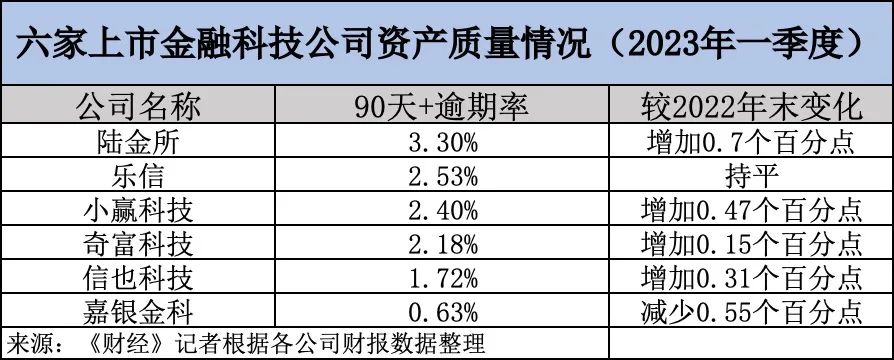 日前,包括陆金所控股(NYSE:LU)、奇富科技(原360数科,NASDAQ:QFIN)、乐信(NASDAQ:LX)、信也科技(NYSE:FINV)、小赢科技(NYSE:XYF)、嘉银金科(NASDAQ:JFIN)在内的六家美股上市金融科技公司,相继披露了2023年一季度未经审计财务业绩。