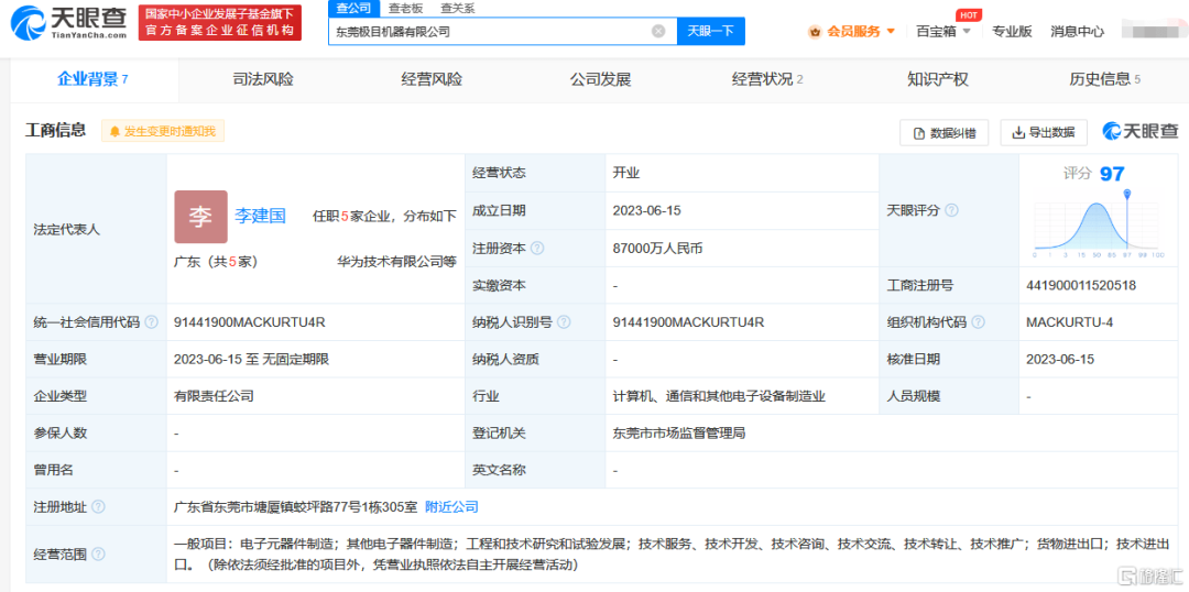 今天有报道称,华为成立新公司极目机器,注册资本8.7亿人民币,经营范围含电子元器件制造、工程和技术研究和试验发展等,布局目标直奔机器人与智能制造。