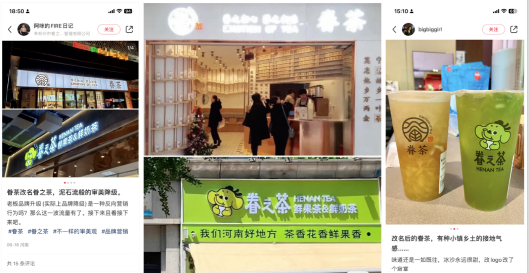 在小红书、视频号等平台上,“泥石流般的审美降级”“眷茶是被绑架了么?”“眷茶变身山寨品牌”等负面评价不绝于耳。更有评论表示“此次升级直接将眷之茶翻译为Henan Tea,是一种以偏概全的行为,眷之茶是否能代表河南尚无定论,这样的翻译太过草率。”而在得知此番品牌升级共花费280万(估算价格),本地行业从业者纷纷为眷茶不值。