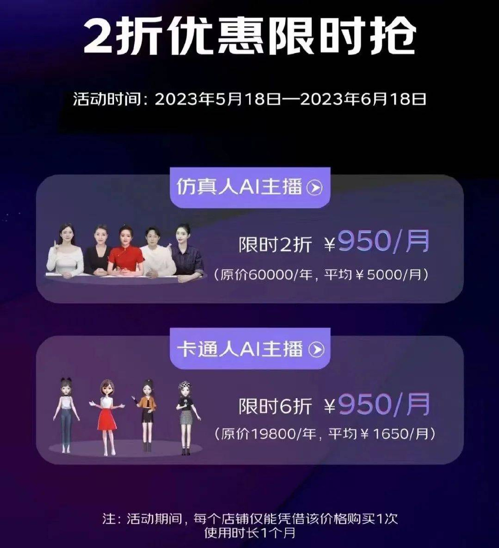 之所以说是平替,是因为相较于人工主播,AI主播的成本有了大幅缩减。抖音巨量星图显示,粉丝量在50万—100万的达人、主播,1-20秒的短视频报价多数集中在1万-10万元区间。