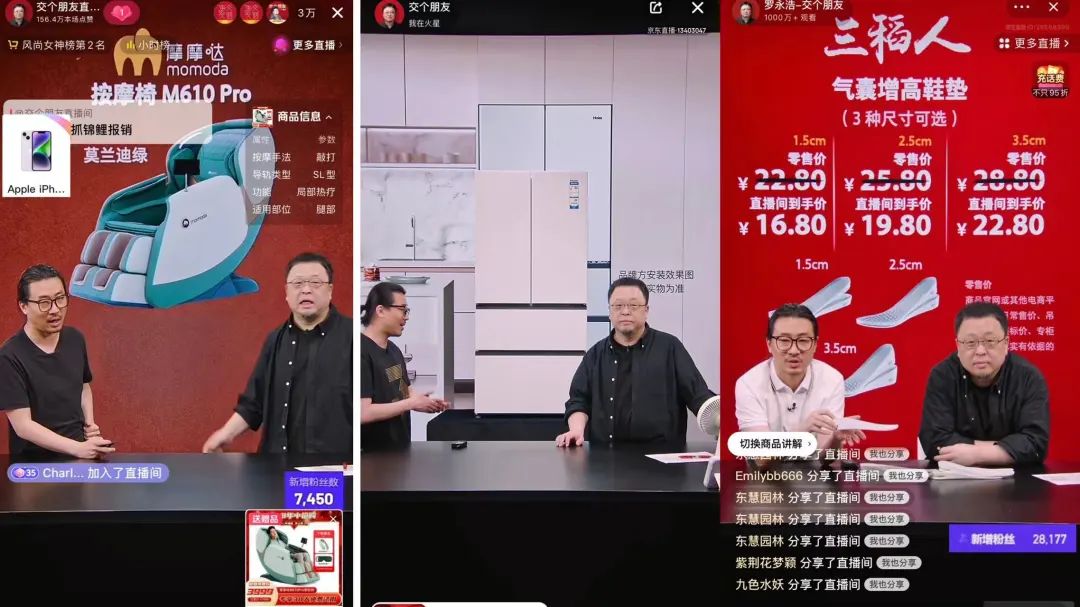 图注:罗永浩在抖音、京东、淘宝直播