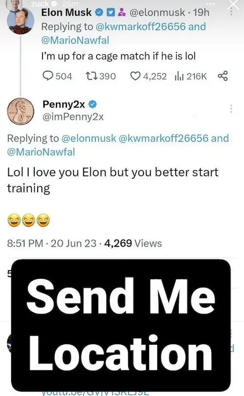 另一位网友适时拱火,“最好小心点,我听说他现在会柔术了。”相关消息显示,扎克伯格于上个月在硅谷举行的一场巴西柔术锦标赛中获得奖牌,他的教练是一名曾训练过多位UFC冠军的柔道“黑带”选手。