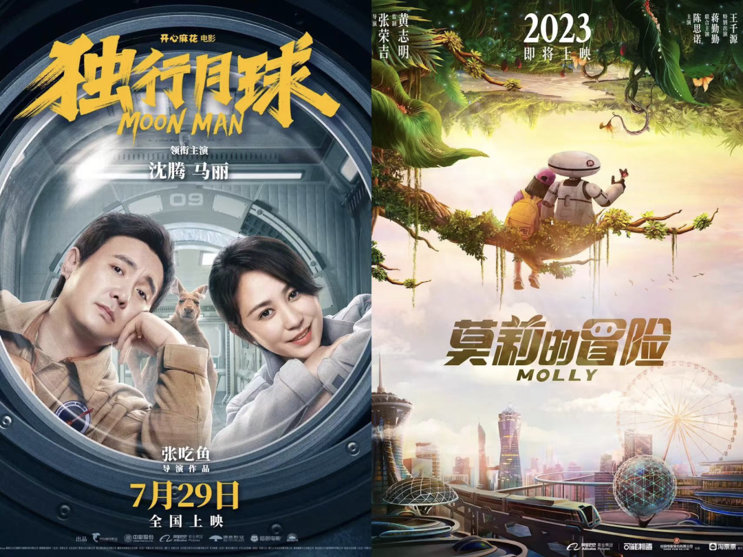 比如以《疯狂的外星人》《独行月球》为代表的作品,开启了独特的“科幻+喜剧”的类型搭配,是春节档与暑期档的合家欢之作;陈思诚壹同传奇的《外太空的莫奈》延续《外太空的莫扎特》的“外太空”IP电影系列,将家庭、喜剧与奇幻结合,主打青少年科幻;阿里影业出品的《莫莉的冒险》在家庭故事中加入机器人角色,讲述少女莫莉和她的废柴机器人在寻父之旅中,找到爱与勇气的成长故事。机器人、外星人在角色设定上高频出现。